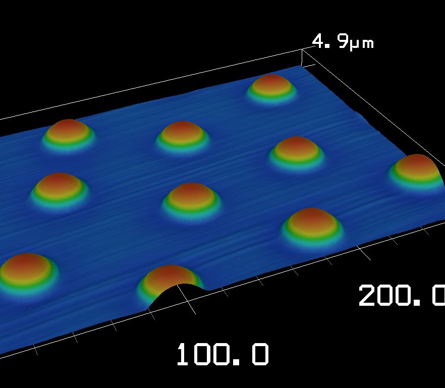 導光板注塑模具加工,深度4.9um | 撞點加激光補點,激光深度 0.3um | 錐形結(jié)構(gòu)撞點 | 導光板注塑模具加工,深度3.6um |